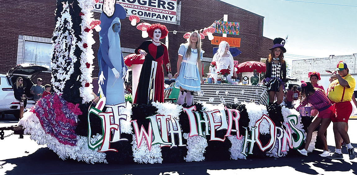 Second place float winner in the parade was the Alice And Wonderland float from senior class.