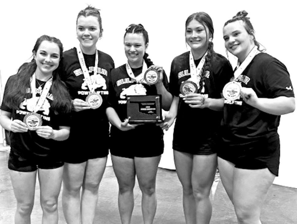 Winning individual place medals in the state lifting meet in March were, from left, Addy Hardoin, Olivia Cox, Gracie Ratchford, Zoli May and Destrie Muck. The five helped the Lady Bulldogs win their first state powerlifting title.
