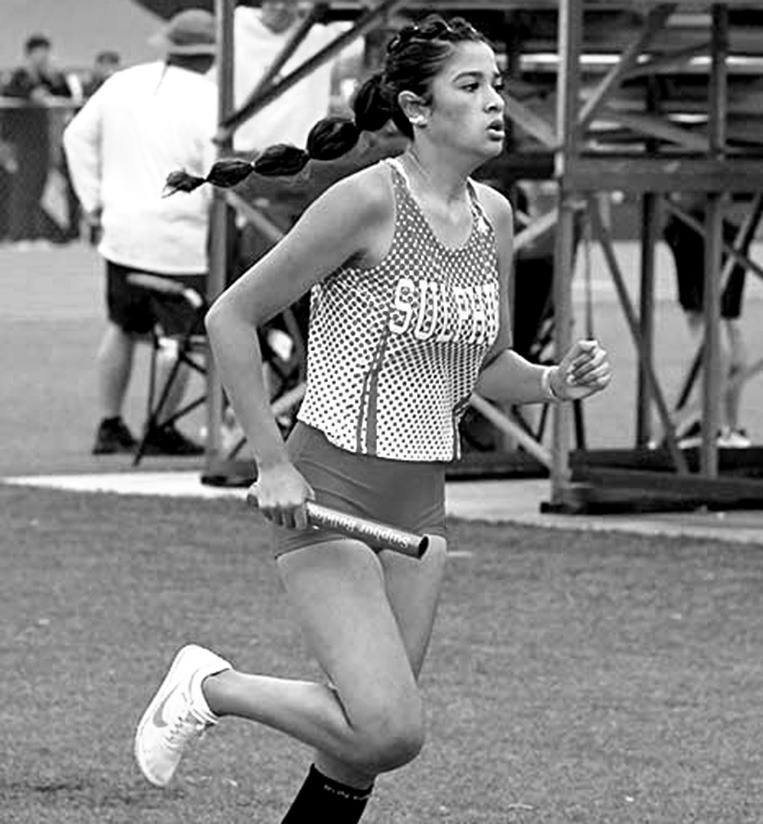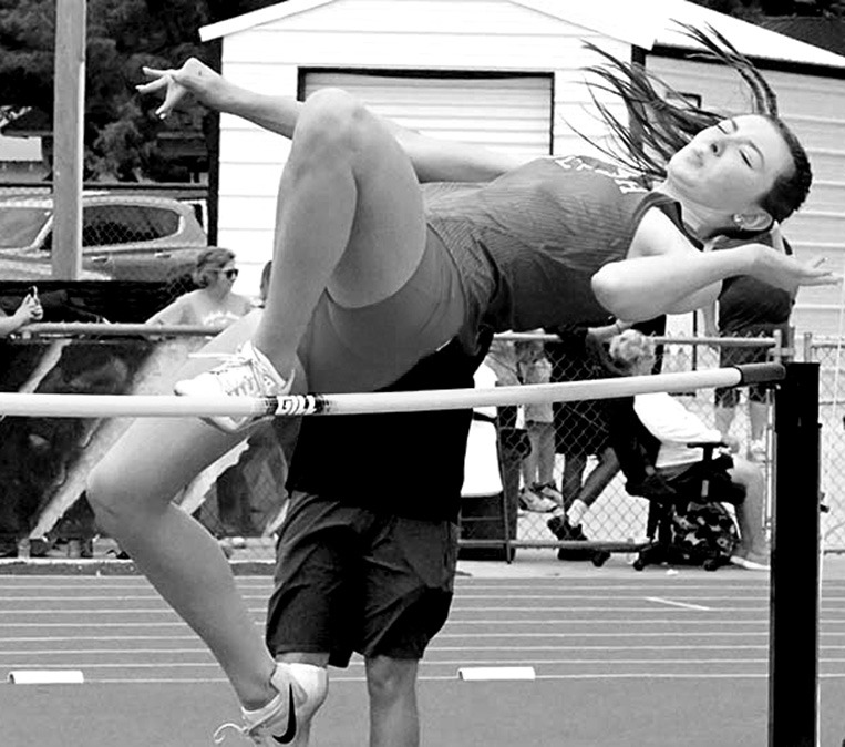 ABOVE: Sulphur’s Taisley Stuckey, won a first place in the high jump in the junior high division at the LCC Track Meet last Saturday. LEFT: Lady Bulldog Daniela Rojo Rios runs a leg in the 3200-meter relay in last Saturday’s meet. She was joined by Rory McMillan, Paxtyn Hiser, and Kate Woods in a fourth place effort. PHOTOS BY DON COFFEY